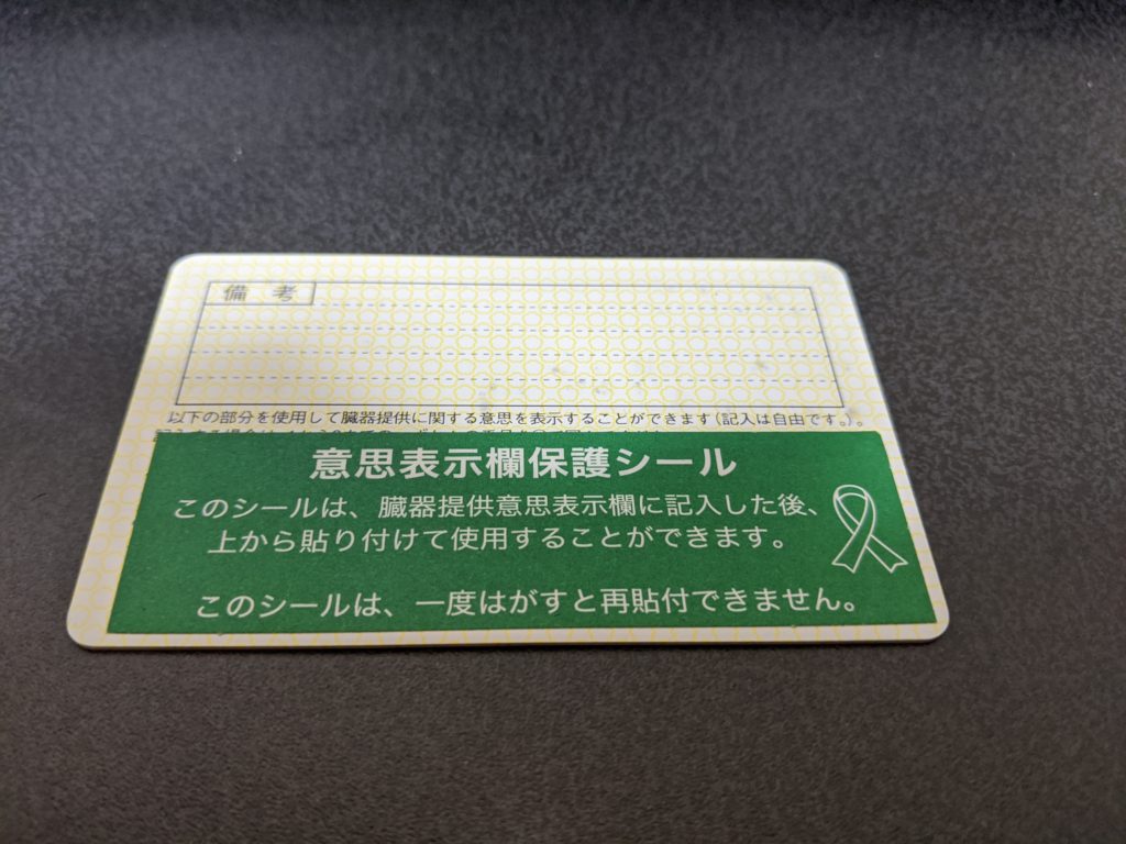 免許裏面にある臓器移植意思表示の所に貼るステッカーですね。