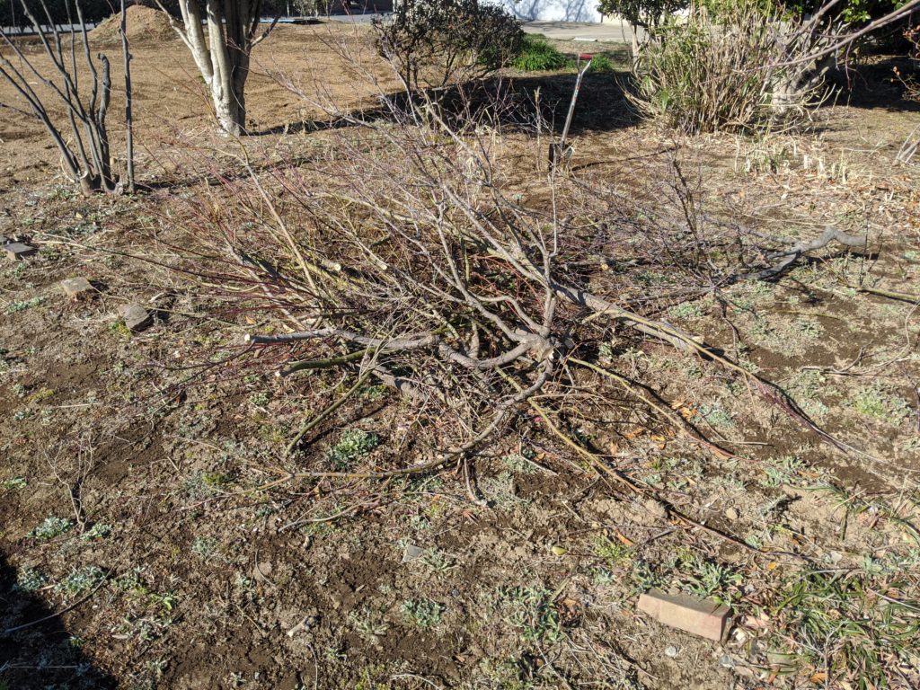ビフォーがないけどだいぶすっきり。高さも3尺の脚立の天板に乗って届く範囲だからだいぶすっきりかな。奥に見える木を切りたいだけどめんどくさいなゴミ片付けが。